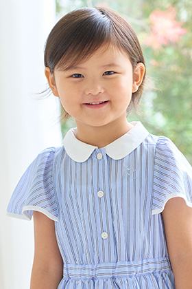 生年月日:2021年3月22日 / 身長:105cm / バスト:55cm / ウェスト:52cm / ヒップ:56cm / 靴:17.5cm